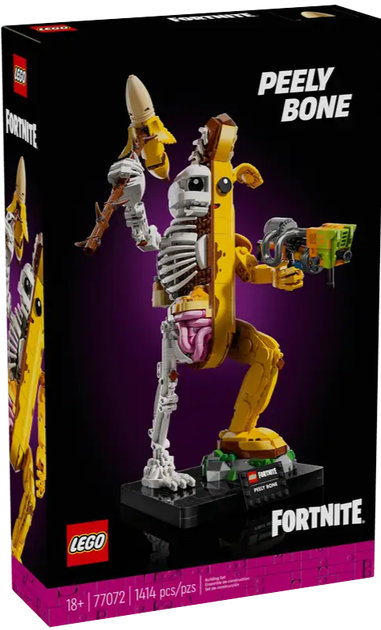 Fani gry Fortnite mogą teraz przeżywać przygody poza ekranem, składając zbudowaną z klocków wersję Skórkośćca, który jest w połowie bananem, a w połowie szkieletem. Będą zachwyceni ruchomymi rękami i nadgarstkami postaci, a także fajnymi akcesoriami, w tym kilofem i plecakiem z bananami.