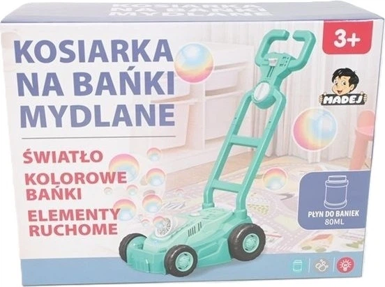 Niebieska kosiarka na bańki to zabawka, która sprawi dzieciom mnóstwo radości. Podczas pchania kosiarki wytwarza kolorowe bańki mydlane, tworząc efektowną i magiczną zabawę na świeżym powietrzu. Lekka konstrukcja i prosty mechanizm sprawiają, że jest łatwa w użyciu nawet dla najmłodszych. Idealna na ogród, piknik czy wspólne zabawy z przyjaciółmi.