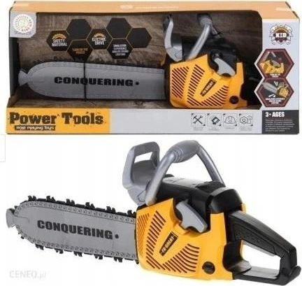 Zabawka posiada imitację linki rozruchowej – po jej pociągnięciu piła wydaje dźwięk uruchamianego silnika. Po naciśnięciu przycisku na uchwycie uruchamia się ruchomy łańcuch, któremu towarzyszą efekty dźwiękowe oraz podświetlenie nad prowadnicą. Dzięki temu dziecko może odgrywać realistyczne scenki i rozwijać wyobraźnię podczas zabawy w małego drwala.