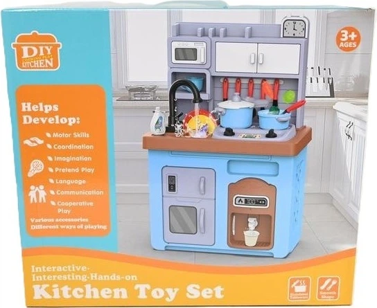 Kuchnia ma poręczny wymiar 46.5 × 19 × 41 cm, dzięki czemu świetnie sprawdzi się podczas zabawy w domu. W komplecie znajdują się niezbędne elementy do przygotowywania wymyślonych potraw, co pomaga rozwijać wyobraźnię, kreatywność oraz umiejętności społeczne dziecka.