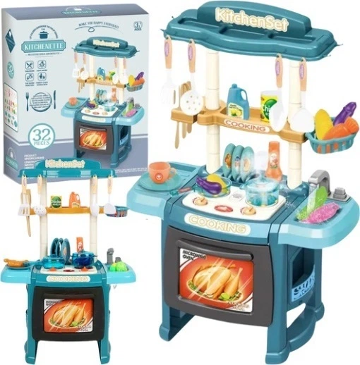 Po włączeniu palniki świecą oraz mogą wydawać dźwięki gotowania, co dodaje zabawie realizmu i pobudza wyobraźnię. Dziecko może mieszać, smażyć, podgrzewać, a następnie podać obiad domownikom lub pluszakom. W zestawie znajduje się wiele elementów, które można odkładać na półki lub zawiesić na haczykach, dzięki czemu maluch uczy się porządku oraz organizacji przestrzeni.