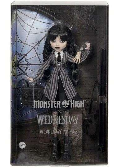 Twórcy Monster High i „Wednesday” wspólnie przygotowali upiornie piękną linię lalek inspirowaną hitowym serialem i główną bohaterką o nietuzinkowej osobowości. Kolekcjonerska lalka Wednesday Addams w czerni od stóp do głów wywołuje dreszczyk emocji ubrana w szkolny mundurek Akademii Nevermore. Z figurką Rączki przycupniętą na jej ramieniu i zabójczo stylowymi butami jest gotowa odkryć wszystkie przerażające tajemnice.