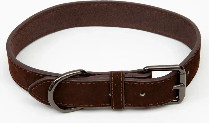 Ciemno-brązowy kolor nadaje jej ponadczasowy, uniwersalny wygląd, który doskonale komponuje się z różnymi rasami i rodzajami sierści. Solidne zapięcie oraz metalowe kółko do przypięcia smyczy gwarantują trwałość i wygodę użytkowania.