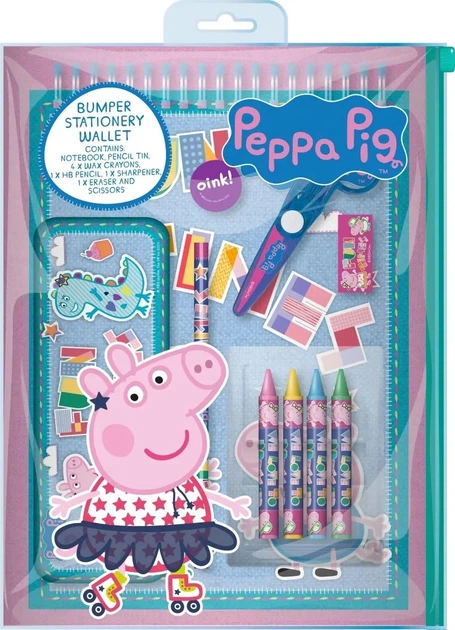 Dzieci bardzo lubią tworzyć. Dzięki zestawowi przyborów piśmienniczych możesz podarować swoim dzieciom kompletny zestaw przyborów, aby mogły wykazać się kreatywnością i dać upust swojej wyobraźni. Ten duży zestaw przyborów piśmienniczych z wyimaginowanego świata świnki Peppy zawiera zeszyt, piórnik, 4 kredki, 1 ołówek HB, 1 temperówkę, 1 gumkę i nożyczki bezpieczne dla dzieci. Jest idealny dla każdego dziecka, które lubi świnkę Peppy.