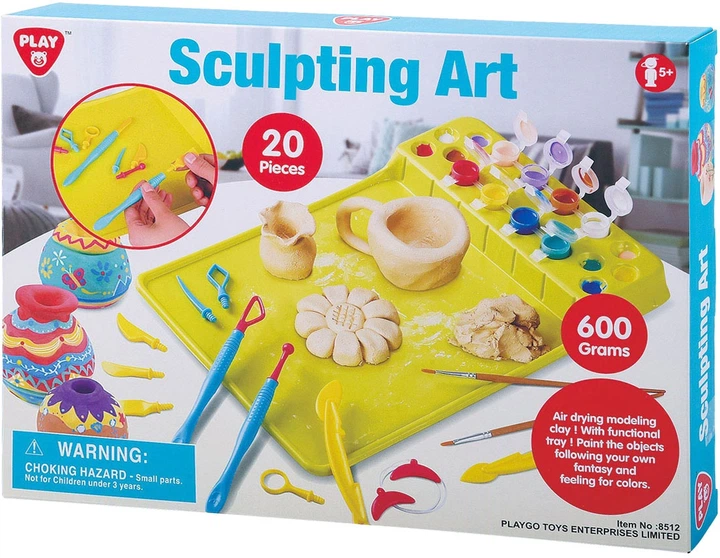 Почніть творити з цим набором для моделювання PlayGo, що складається з 20 предметів. Набір містить основу для моделювання, 600 грамів самотвердіючої глини, фарби на водній основі, пензлі та додаткові інструменти. Підходить для дітей віком від 5 років.