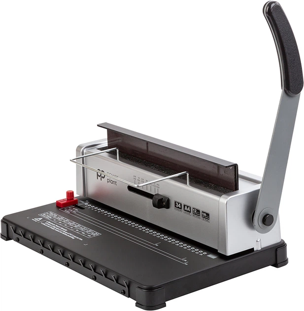 PowerPlant PP-STB18 do oprawy metalowej sprężynowej. Przeznaczony do oprawy dokumentów do 120 arkuszy papieru o gramaturze 80 g/m². Możliwość perforowania do 12 arkuszy papieru biurowego jednocześnie.