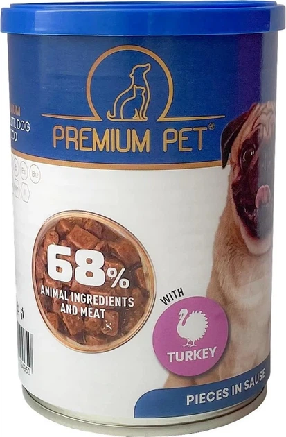 Mokra karma dla dorosłych psów PREMIUM PET Kawałki w sosie z indykiem 415 g to pełnoporcjowy posiłek przeznaczony dla psów wszystkich ras powyżej 1. roku życia. Delikatne kawałki zanurzone w sosie zapewniają odpowiednią konsystencję i ułatwiają pobieranie karmy.