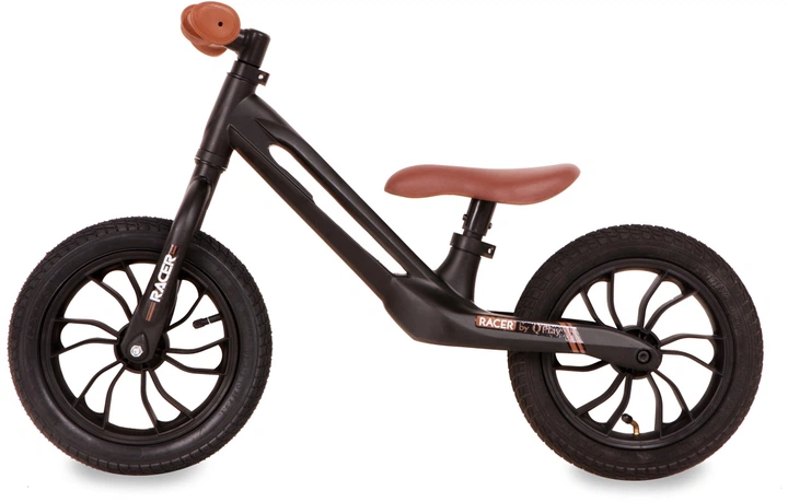 Rowerek biegowy Racer to designerski i solidny produkt, zaprojektowany i wykonany w najnowszej technologii. Stop magnezu wykorzystany w ramie powoduje, że jest ona lekka, ma wysoką wytrzymałość i duży moduł sprężystości. Użyte w rowerku 12” pompowane opony z bieżnikowaniem zapewnią stabilność i bezpieczeństwo na wszystkich nawierzchniach drogowych.