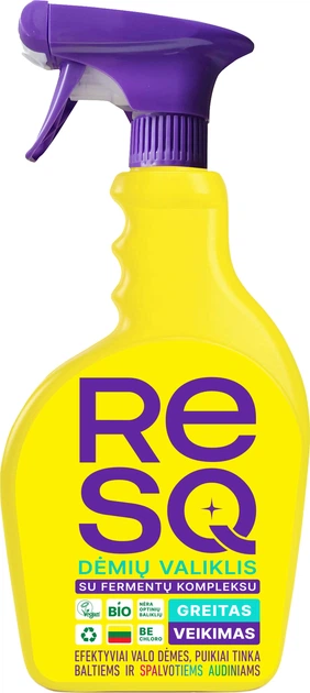 Odplamiacz RESQ z kompleksem enzymatycznym usuwa plamy z potu, kawy, herbaty, makijażu, krwi, rdzy, mleka, tłuszczu, oleju, owoców, wina oraz warzyw. Specjalna nasadka tworzy pianę, która wnika głęboko w strukturę tkaniny. Naturalne enzymy zawarte w preparacie skutecznie usuwają nawet uporczywe zabrudzenia.