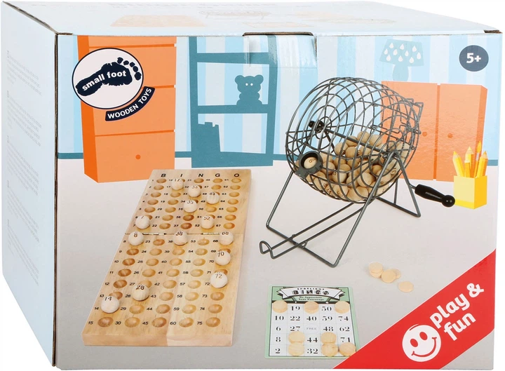 Bingo! Realistyczna gra bingo do zabawy przy stole. Zasady są takie same jak dla profesjonalistów – zwycięskie liczby są losowane z metalowego bębna. Pozostali muszą zgadywać. Dobra zabawa gwarantowana dzięki 24 kartom, 75 drewnianym kulkom, 150 drewnianym kartom do talii i wysokiej jakości drewnianej planszy. Obróć uchwyt i zaczynamy!