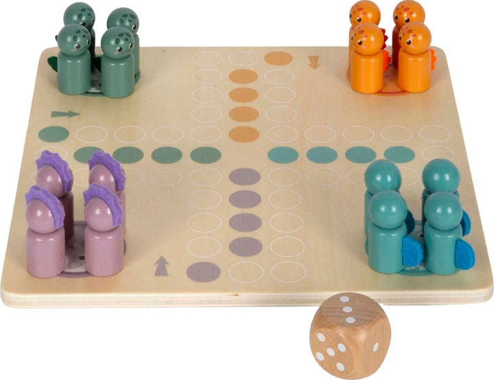 Gra planszowa Chińczyk z motywem dinozaurów. Odpowiednia dla dzieci od 4 lat.