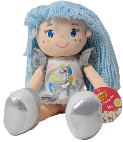 • Oryginalne Niebieskie Włosy: Miękkie pasma w kolorze błękitu nadają jej unikalnego charakteru i sprawiają, że lalka wyróżnia się na tle innych przytulanek.