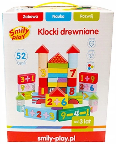 Klocki drewniane Smily Play to wyjątkowy zestaw, który rozwija wyobraźnię i zdolności manualne dzieci. Zawiera 52 kolorowe elementy w różnych kształtach, idealne do tworzenia własnych konstrukcji. Klocki wykonane są z naturalnego drewna, bezpiecznego i trwałego. Każdy element ma gładkie, zaokrąglone krawędzie, co zwiększa bezpieczeństwo zabawy. Zestaw wspiera naukę kolorów, kształtów i logicznego myślenia w przyjemny sposób. Dzieci mogą tworzyć budowle, pojazdy, zwierzęta i wiele innych kreatywnych projektów. Klocki rozwijają cierpliwość, koncentrację i umiejętności planowania. Są lekkie, łatwe do przenoszenia i przechowywania w praktycznym opakowaniu. Zestaw pozwala na zabawę samodzielną oraz w grupie, wspierając współpracę i komunikację. To doskonały sposób na połączenie nauki z radością tworzenia.