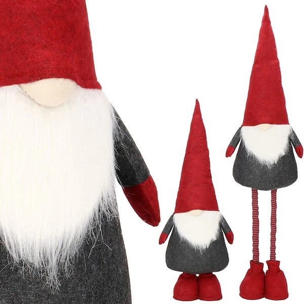 • Stabilność i Bezpieczeństwo: Mimo swojej wysokości, gnom jest niezwykle stabilny. Jego puszyste, czerwone buciki są ze sobą połączone, tworząc solidną podstawę. Dzięki temu skrzat stoi pewnie na podłodze, dywanie czy przy choince, nie wymagając dodatkowych podpórek.