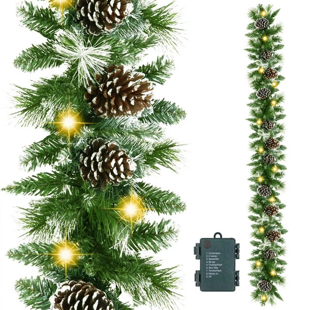 Ozdoba świetlna Springos girlanda świąteczna sztuczna 50 LED CA1287 to uniwersalna i efektowna dekoracja, która wprowadza magię świąt do każdego wnętrza. 50 diod LED równomiernie oświetla girlandę, tworząc ciepły i przytulny klimat. Girlanda może być zawieszona na ścianach, drzwiach, oknach, balustradach lub użyta jako dekoracja stołu. Lampki są energooszczędne, trwałe i bezpieczne w codziennym użytkowaniu. Elastyczny przewód pozwala na łatwe formowanie girlandy i dopasowanie jej do dowolnej powierzchni. Odporność na wilgoć umożliwia używanie girlandy również na zewnątrz. Jej migotanie przyciąga wzrok i wprowadza radosny, świąteczny nastrój. Pasuje do wnętrz klasycznych i nowoczesnych, dodając elegancji i uroku każdej aranżacji. Girlanda jest lekka, łatwa w przechowywaniu i wielokrotnego użycia. Każda dioda została starannie wykonana, aby zapewnić trwałość i wysoką jakość. Lampki równomiernie rozświetlają przestrzeń, tworząc efektowną dekorację. Idealnie sprawdzają się na Boże Narodzenie, przyjęcia i romantyczne wieczory. Tworzą przytulną i elegancką atmosferę, która zachwyca domowników i gości. To propozycja dla osób, które cenią funkcjonalność i piękno dekoracji.