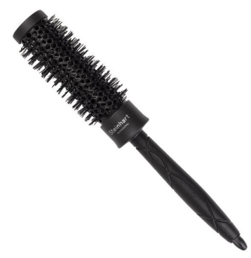 Równomiernie rozprowadza ciepło z suszarki na całej powierzchni korpusu. Zapobiega to powstawaniu „gorących punktów”, które mogłyby uszkodzić strukturę włosa, oraz znacznie skraca czas suszenia. Technologia jonowa: Nylonowe włosie wzbogacone o funkcję jonizacji domyka łuski włosa, eliminując problem puszenia się i elektryzowania. Efektem są niezwykle gładkie, lśniące i miękkie w dotyku pasma. Optymalna średnica 28 mm