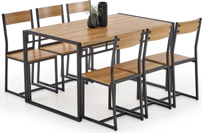 Zestaw mebli Halmar BOLIVAR stół do jadalni 140 x 80 cm, 6 krzeseł Dąb złoty/czarny (5905248102446) Dodaj opinię Chwilowo niedostępny