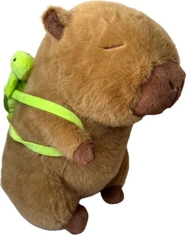 Urocza kapibara w dużym rozmiarze to wyjątkowa przytulanka, która natychmiast wzbudza sympatię swoim zamkniętym oczkiem i spokojnym wyrazem pyszczka. Wykonana z miękkiego, puszystego materiału, idealnie nadaje się do przytulania i dekoracji dziecięcego pokoju. Dodatkowym elementem, który wyróżnia tę zabawkę, jest zielony plecaczek w kształcie żółwia – przymocowany do pleców kapibary, nadaje całości jeszcze więcej uroku i charakteru.