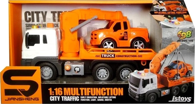 Do lawety dołączone jest mniejsze autko, co pozwala na rozpoczęcie zabawy w transport i holowanie natychmiast po wyjęciu z pudełka.
