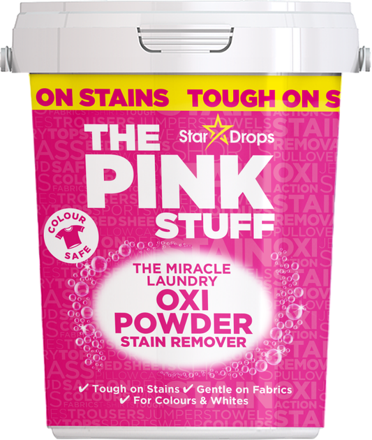 Odplamiacz w proszku The Pink Stuff Oxi Powder Stain Remover for Colours to skuteczny preparat do usuwania plam z tekstyliów zarówno kolorowych, jak i białych. Dzięki formule opartej na aktywnym tlenie i delikatnej, biologicznej akcji, preparat skutecznie usuwa uporczywe zabrudzenia, nawet przy niższych temperaturach prania. Doskonale sprawdza się jako dodatek do zwykłego prania lub do wcześniejszego namaczania trudnych plam. Produkt pozostawia świeży, czysty zapach charakterystyczny dla The Pink Stuff.