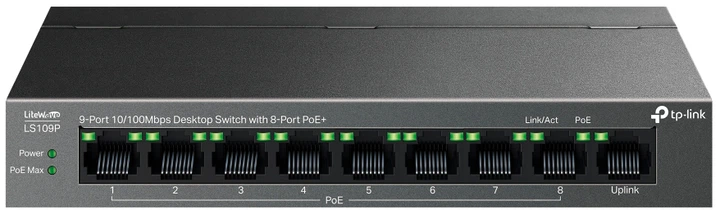 9-portowy przełącznik stacjonarny 10/100 Mb/s z 8 portami PoE+