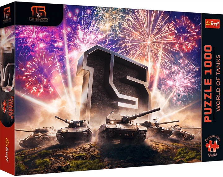 Świętuj 15-lecie kultowej gry World of Tanks w wyjątkowy sposób! Te ekskluzywne, limitowane puzzle Premium Plus Quality to prawdziwa gratka dla fanów gry i miłośników układanek. Zestaw składa się z 1000 precyzyjnie wyciętych elementów, które po złożeniu tworzą dynamiczną i efektowną grafikę przedstawiającą potężne czołgi w blasku fajerwerków. Po ich ułożeniu powstanie obraz o wymiarach 683x480 mm. W opakowaniu znajdziesz plakat, który ułatwi układanie. To nie tylko wciągająca rozrywka, ale także świetna pamiątka związana z jedną z najbardziej rozpoznawalnych gier online na świecie. Dzięki połączeniu pasji do puzzli i miłości do World of Tanks możesz cieszyć się chwilą relaksu, jednocześnie składając hołd ulubionej grze.