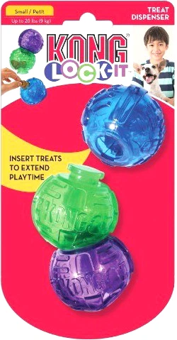KONG Lock-It 3-PK Small to zestaw trzech małych zabawek dla psa zaprojektowanych przez firmę KONG. Te zabawki mają kształt sześcianu z otworami i zostały zaprojektowane tak, aby bawić i stymulować umysłowo Twojego psa podczas zabawy. Każda zabawka ma inny poziom trudności, dzięki czemu Twój pies może stopniowo doskonalić swoje umiejętności i otrzymywać nagrody za swoje osiągnięcia. KONG Lock-It 3-PK Small jest wykonany z bezpiecznych i trwałych materiałów, takich jak pianka i plastik, które są odporne na zużycie. Ten zestaw to świetny sposób na zapewnienie psu rozrywki i zajęcia podczas zabawy.