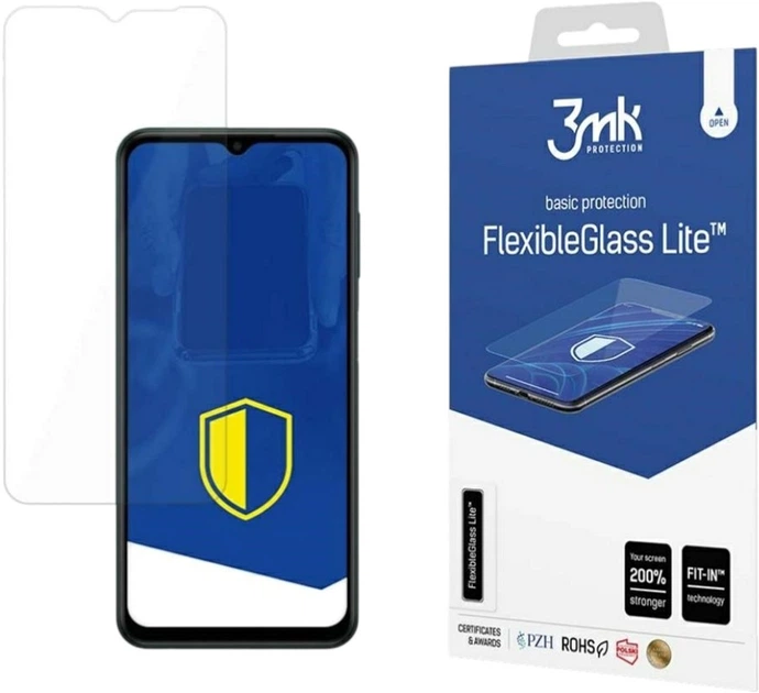 Завдяки поєднанню найкращих властивостей скла та плівки 3MK FlexibleGlass Lite він стійкий до розтріскування та підвищує ударостійкість екрана до 200%. У набір входять монтажні аксесуари, які спрощують і прискорюють нанесення скла.