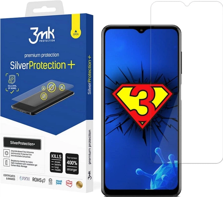 Компанія 3MK оснастила свою плівку SilverProtection+ антимікробним покриттям на основі наночастинок срібла. Це єдиний захист екрана, який одночасно піклується про вашу безпеку і вбиває 99% відомих вірусів, бактерій, грибків і плісняви. Покриття працює 24 години на добу, 7 днів на тиждень. Воно гарантує повну безпеку навіть тоді, коли ви не можете подбати про належну дезінфекцію свого смартфона.