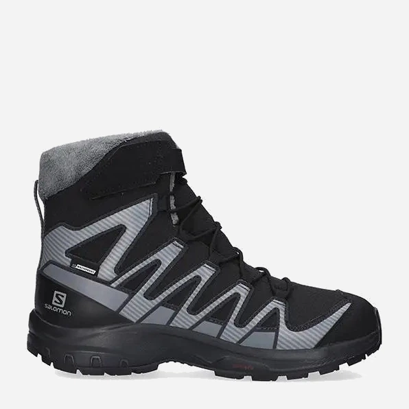 Salomon xa pro V8 Winter CSWP J dla dzieci i nastolatków mają wygodną podszewkę z włosia oraz technologię dopasowania i przyczepności firmy