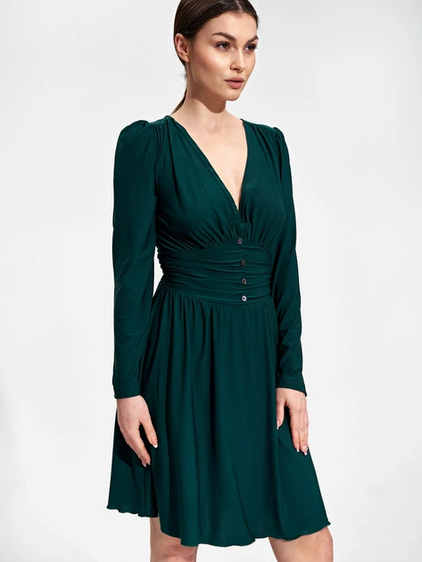 Стильна повсякденна сукня, створена для комфортного носіння в осінньо-весняний період. Виготовлені з поліестеру та еластану, вони забезпечують гнучкість і комфортну посадку. Однотонний колір із довгими рукавами та крій, який поєднує в собі приталений силует і свободу розкльошеної спідниці, додає елегантності. Довжина міні робить його зручним і стильним вибором для повсякденного носіння протягом перехідного періоду.