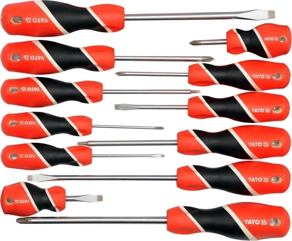 - Zestaw dwunastu profesjonalnych wkrętaków pinowych wykonanych ze stali S2, hartowanej do ok. 58 HRC