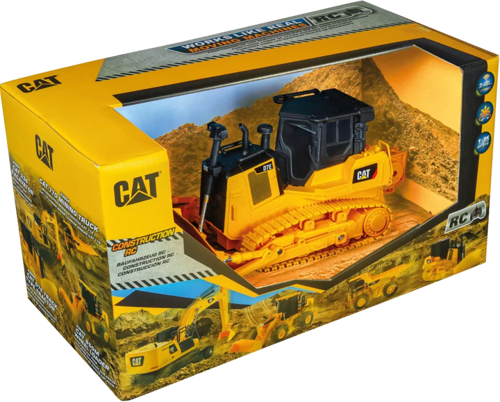 Модель у масштабі 1:35 має довжину близько 24 см і оснащена великим переднім відвалом, яким можна керувати дистанційно за допомогою пульта. Завдяки цьому бульдозер може пересувати пісок, каміння або інші предмети, створюючи реалістичні умови для гри та будівельних завдань. Задні розпушувачі можна регулювати вручну, що робить гру ще більш реалістичною.