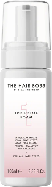 The Hair Boss The Detox Foam - веганська багатофункціональна легка піна для волосся, яка ефективно видаляє забруднення та очищає волосся. Ідеально підходить для усунення сухого шампуню, хлору та накопичення жорсткої води, залишаючи ваше волосся виключно чистим і свіжим. Захищає волосся від шкідливих факторів навколишнього середовища. Порада: перед входом у басейн нанесіть на волосся мус і швидко висушіть його, щоб захистити волосся від хлору!