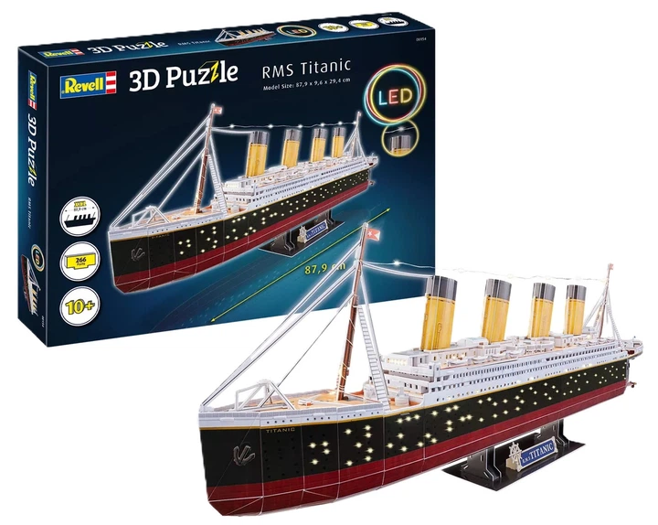 Нічна версія, запали свою кімнату! Миготливі світлодіоди роблять модель ще більш ефектною. Ідеально підходить для подарунка на день народження / Різдво / Новий рік. Виглядає дуже реалістично при відображенні. Ідеальний подарунок і сувенір для друзів і дітей.Поєднання розваги та навчання! Зібравши цю 3D світлодіодну модель Титаніка, ви дізнаєтеся багато нового про історію корабля. Допомагає розвивати практичні навички та логічне мислення.Унікальна ідея для подарунка! Реалістичний корабель у масштабі 1:305 - чудовий подарунок на будь-яке свято. Приємно збиратися разом з сім'єю та друзями. Стильна прикраса для дому, яка здивує кожного. Розмір коробки: 29.8 x 21.8 x 6 см.Сімейний час з пазлами для дому та друзів! Світлодіодний ефект відтворює величний лайнер вночі. 85 світлодіодних ліхтарів знаходяться під палубою, створюючи вражаюче сяйво.Збирається з 266 деталей без використання клею! Всі деталі точно підігнані, легко збираються без клею та інструментів. Після складання ви відчуєте неймовірне задоволення.Більший розмір і детальний дизайн! 50.5 x 21 x 38.5 см. Головоломка постачається з попередньо вирізаними пінопластовими дошками, інструкцією та світлодіодними аксесуарами. Збирається приблизно за 4 години. Рекомендовано для дітей віком від 14 років.