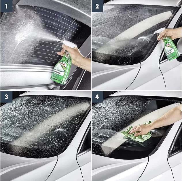 • Spryskaj produktem szyby i pióra wycieraczek i pozostaw na chwilę.