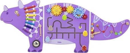 Ця захоплююча сенсорна дошка у формі динозавра трицератопса від бренду Viga Toys виводить щоденні ігри на новий рівень освіти! Діти можуть гратися шестернями, лабіринтами з обертовими яйцями та петлями з намистинами — все це в одному багатофункціональному панелі. Дошка ідеально підходить для дому, дитячого садка або ігрової кімнати, заохочує до експериментів і самостійного навчання через творчу гру. Міцна лакована деревина та нетоксичні фарби забезпечують довговічність і безпеку навіть при тривалому використанні.