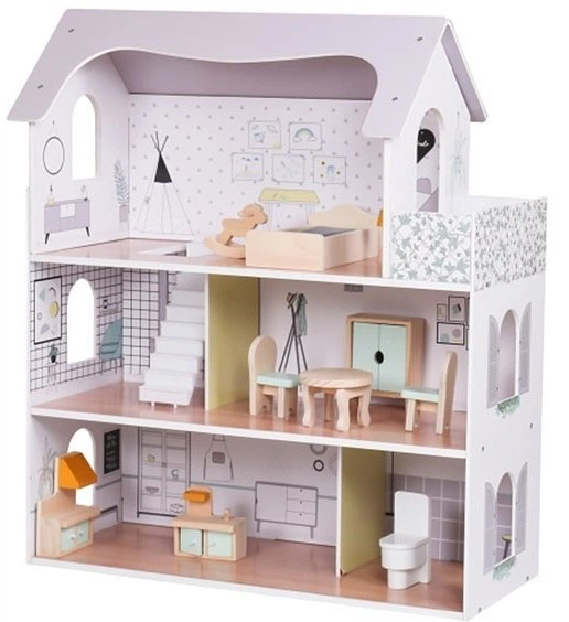 Ляльковий будиночок з реалістичним інтер'єром дозволить розкріпачити дитячу уяву. Просто помістіть мініатюрну ляльку або іншу іграшку в будиночок, і він перетвориться на казковий особняк, який стане фоном для захоплюючої історії або фотосесії. Ляльковий будиночок з 3 поверхами та дерев'яними меблями забезпечить розваги на довгі години. Ви можете подарувати ляльковий будиночок комусь на день народження, свята або особливі урочистості.