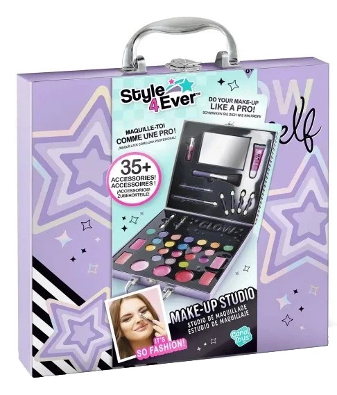 Ідеальний набір для маленьких майстрів макіяжу від 8 років. У комплекті все необхідне для створення різноманітних образів: компактна валіза з ручкою та дзеркалом, помадки, блиски, тіні для повік, рум’яна, кремові тіні та 9 пензликів.