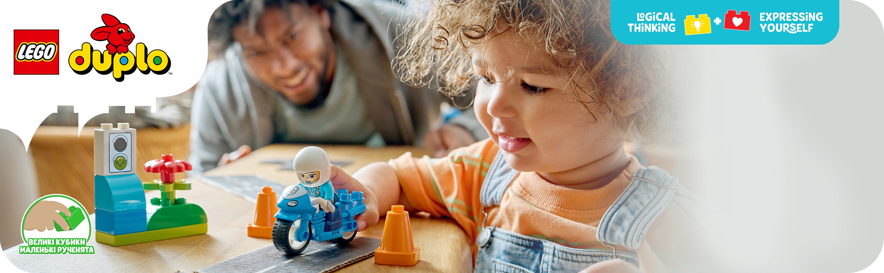 Завдяки великим, зручним у використанні цеглинкам цей набір для гри з мотоциклами легко зібрати маленьким будівельникам.