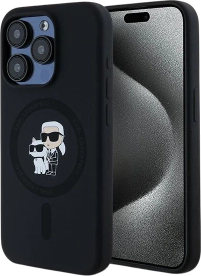 Панель Karl Lagerfeld Silicone Karl & Choupette Ring MagSafe для iPhone 15 Pro Black (3666339254063) - зображення 1