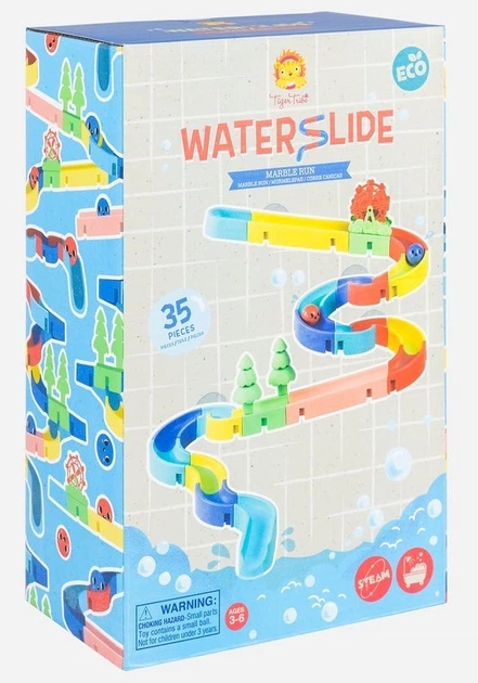 Змініть свій час у ванній з мармуровою водною гіркою ECO від Tiger Tribe. Ця водна гірка, виготовлена з екологічно чистого біопластику, має круті спуски, звивисті повороти та обертове колесо! Доріжка складається з окремих секцій, що дає дітям можливість досліджувати різні схеми гірок.