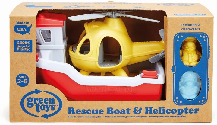Рятувальний човен та вертоліт від Green Toys готові рятувати день на морі! Ця водна іграшка 2-в-1 ідеально підходить для ванни, басейну або саду.