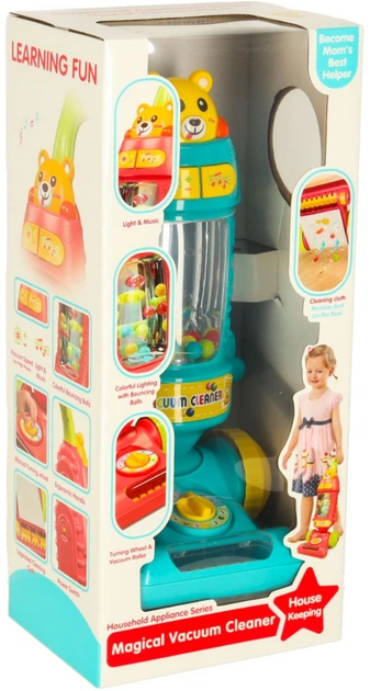 Odkurzacz został wyposażony w efekty świetlne i dźwiękowe.Kolorowe światełka i wesołe melodyjki uatrakcyjnią zabawę.
