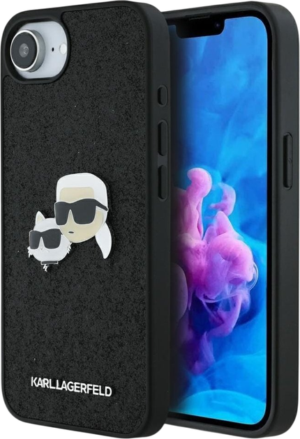 Металевий чохол Karl Lagerfeld Fixed Glitter Karl & Choupette Heads для iPhone 16e, чорний (KLHCPSE4PFGKCPK).