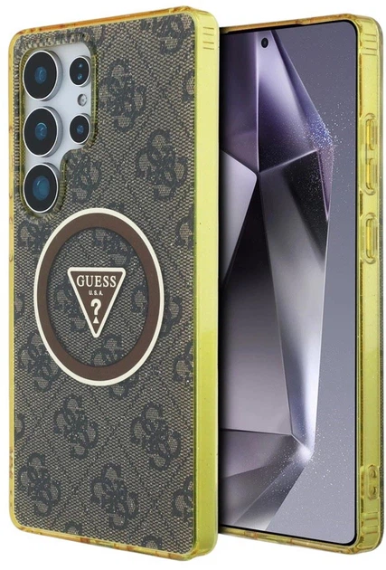 Цей ексклюзивний захисний чохол від відомого бренду Guess поєднує елегантність та стиль найвищого рівня. Чохол виготовлений з високоякісного полікарбонату та поліуретану. Блискуча поверхня прикрашена характерним візерунком 4G та кільцем MagSafe.