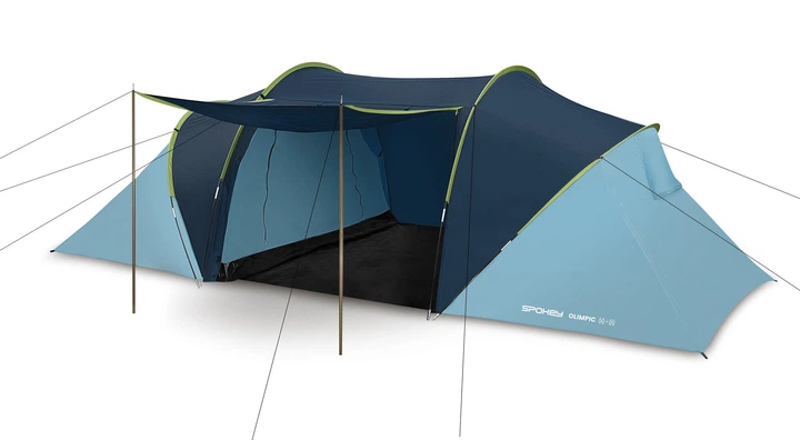Якщо ви плануєте нічний сон на свіжому повітрі та шукаєте намет, який неймовірно зручний та простий у встановленні, а також забезпечує багато місця для сну та зберігання спорядження, Spokey OLIMPIC 2+2 ідеально підійде для вас! Ви можете залишити аксесуари, багаж та взуття між двома спальнями. Водонепроникний настил захищає всі ваші речі від вологи та мокрого ґрунту. Намет Spokey OLIMPIC має унікальний вхід, який можна згорнути або відкрити, щоб створити сонцезахисний тент. Крім того, OLIMPIC оснащений москітною сіткою, що забезпечує максимальний захист від надокучливих та постійних комах (таких як комарі).