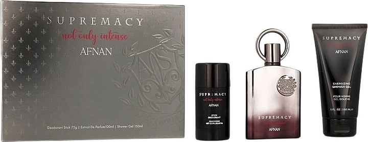 Zestaw Afnan Supremacy Not Only Intense to idealny prezent dla mężczyzny, który lubi wyrafinowane, mocne, współczesne zapachy i chce, aby aromat towarzyszył mu przez cały dzień w spójny i elegancki sposób.