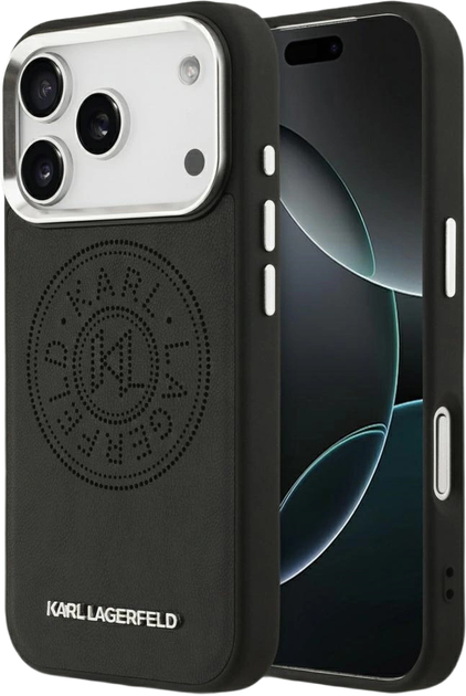 Чохол Karl Lagerfeld Point & Metal Logo MagSafe для iPhone 17 Pro поєднує модний стиль із щоденним захистом. Цей тонкий аксесуар не тільки виглядає елегантно, але й щільно прилягає до вашого пристрою, позбавляючи вас клопоту з громіздкими чохлами, які можуть погіршити роботу магнітних аксесуарів.