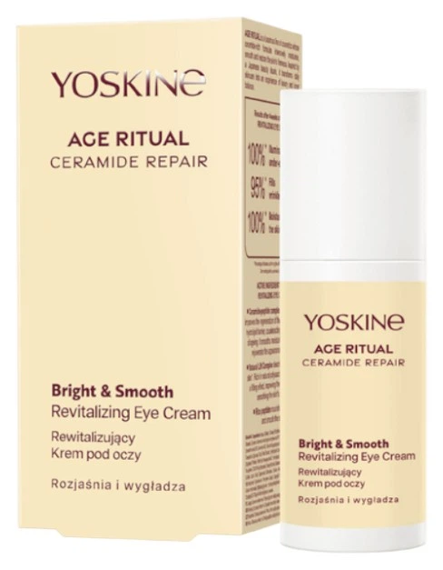 Ревіталізуючий крем для шкіри навколо очей Yoskine Age Ritual — це технологічно вдосконалений засіб догляду, створений для делікатної зони під очима. Формула ефективно зменшує помітність зморшок, інтенсивно зволожує та оптично освітлює темні кола, залишаючи шкіру гладкою, заспокоєною та більш сяючою.